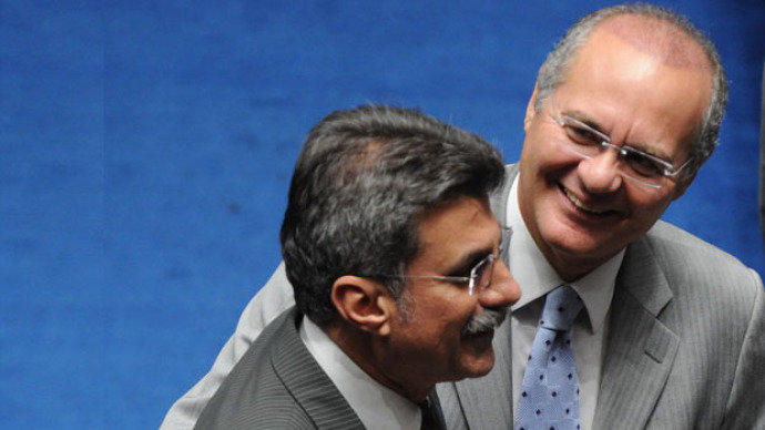 m depoimento, Gruginski disse que, nesse encontro, ouviu de Alexandre Paes dos Santos que existia uma negociaçao de R$ 45 milhõess em propina para senadores favoráveis aos interesses de montadoras de veículos em uma medida provisória.Esses senadores seriam Renan Calheiros, Romero Jucá e Gim Argello, ex-senador do PTB, que foi preso este mês em outra operação, a Lava Jato. O nome de Jucá é dado como certo para comandar o Ministério do Planejamento em um possível governo do vice presidente Michel Temer.