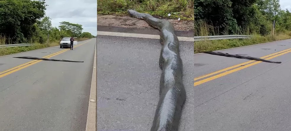 No vídeo registrado por Tailan, um outro motorista freia ao ver a cobra atravessando a pista. O homem também sai do carro para assistir e registrar o momento. Nas imagens, é possível ver que a sucuri tem quase o tamanho da pista.