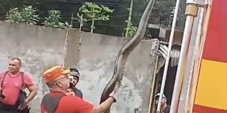 Manaus (AM) – Na tarde desta quinta-feira (28) o Corpo de Bombeiros Militar do Amazonas (CBMAM) recebeu um chamado para resgatar uma sucuri que se encontrava próxima a residências no bairro Cidade Nova, na zona norte da capital.