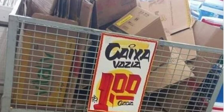 A imagem compartilhada mostra uma pilha de caixas de papelão, de diferentes tamanhos, reunidas em um espaço e com uma placa anunciando “caixa vazia R$ 1,00 cada”. Uma publicação da imagem feita na rede social Twitter, na noite de domingo (5), recebeu, até o início da tarde desta quarta-feira (7), mais de 130 mil curtidas e 14 mil compartilhamentos.