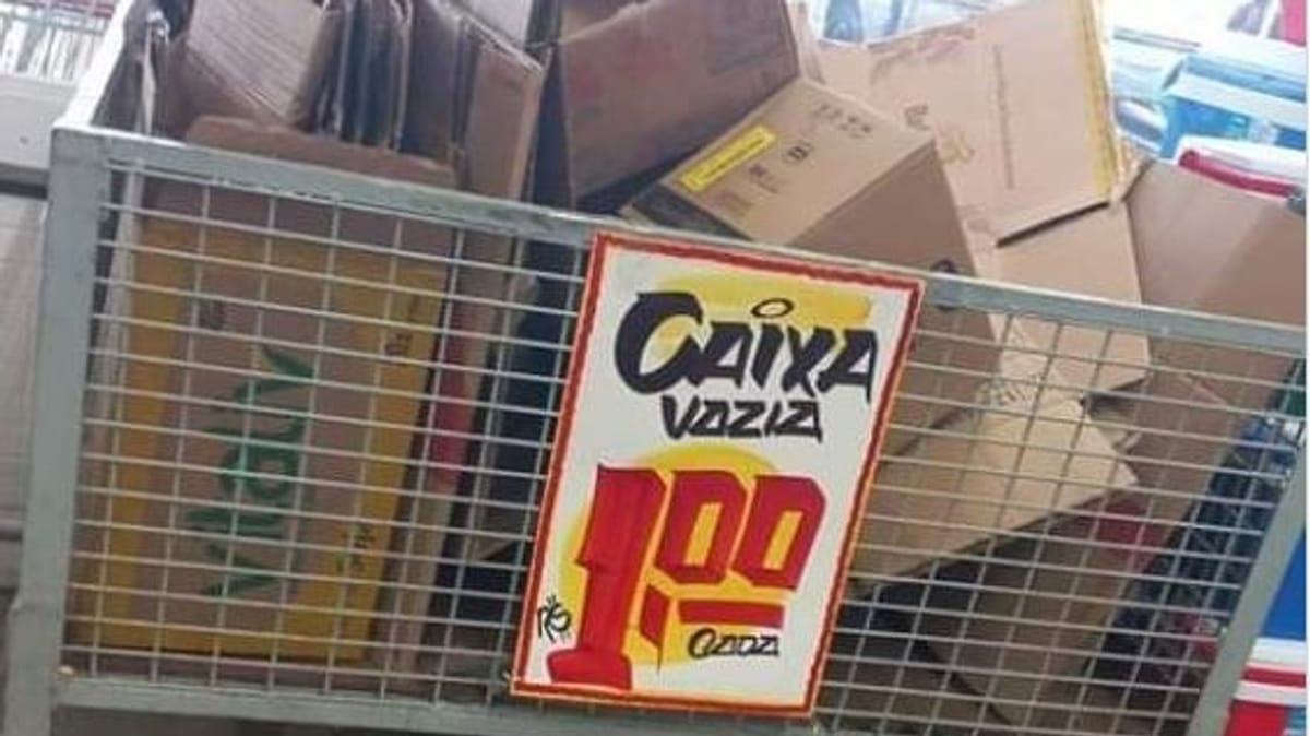 A imagem compartilhada mostra uma pilha de caixas de papelão, de diferentes tamanhos, reunidas em um espaço e com uma placa anunciando “caixa vazia R$ 1,00 cada”. Uma publicação da imagem feita na rede social Twitter, na noite de domingo (5), recebeu, até o início da tarde desta quarta-feira (7), mais de 130 mil curtidas e 14 mil compartilhamentos.