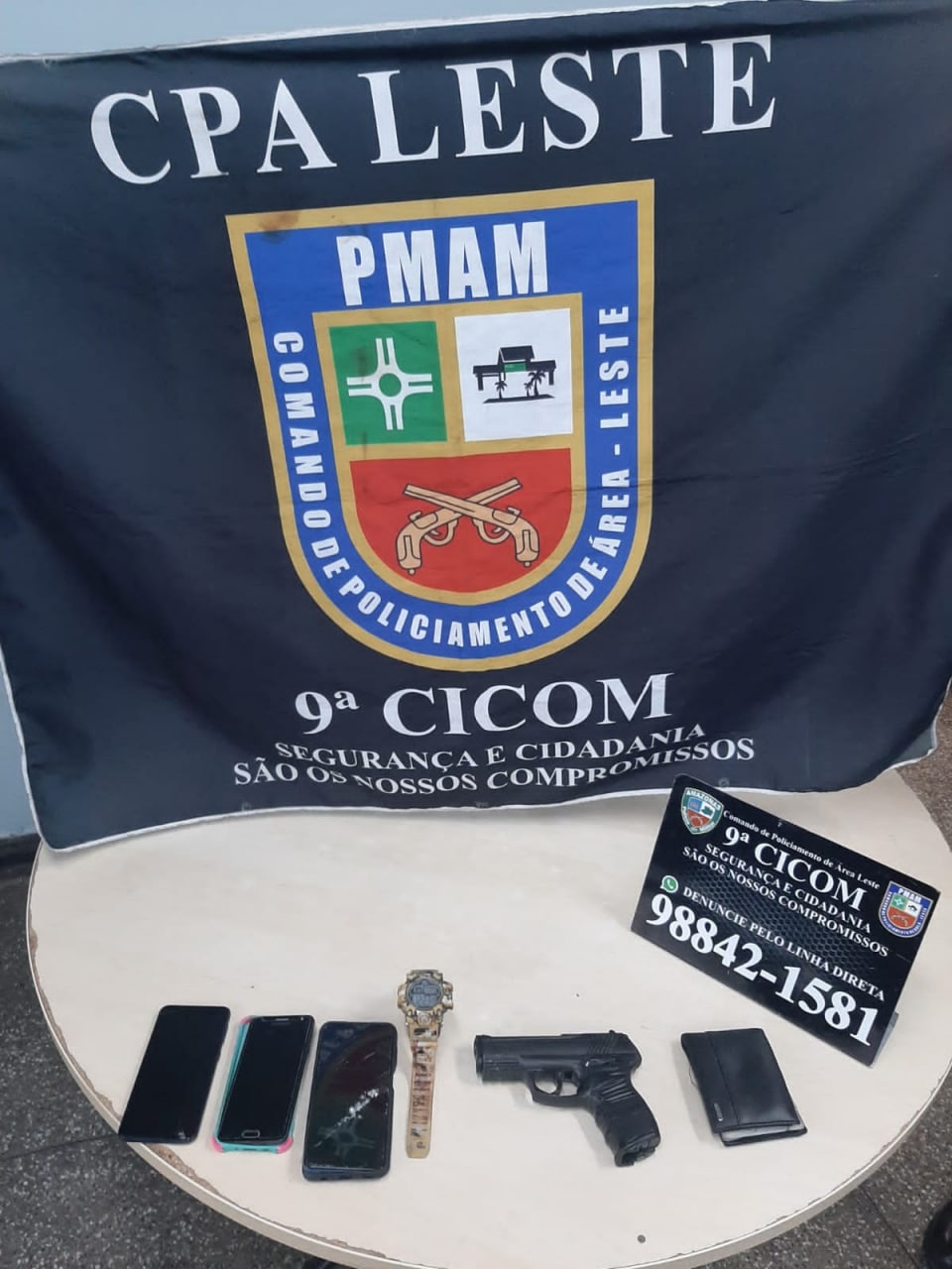Com o infrator foram encontrados um simulacro de arma de fogo, três celulares (sendo dois deles produto de roubo) e um relógio. O homem foi flagranteado e encaminhado para atendimento médico no Hospital e Pronto Socorro João Lúcio, onde segue sob custódia da Polícia Militar. A ocorrência foi registrada no 14° Distrito Integrado de Polícia.
