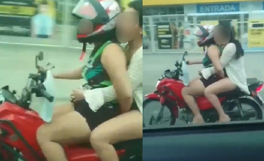 Um motorista que trafegava ao lado percebeu a cena e registrou. “Mano, tá dedando a mulher. Na moto, viad0. Olha aí!”, diz o homem, incrédulo.