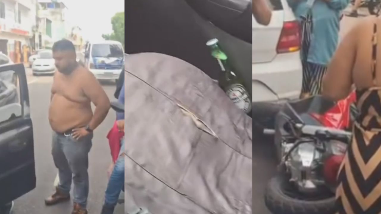 “Ele tá morto de bêbo aqui. Olha o carro do cara, cheio de cerveja. Atropelou a mulher aí”, narra um homem ao mostrar o motorista com sinais de embriaguez.