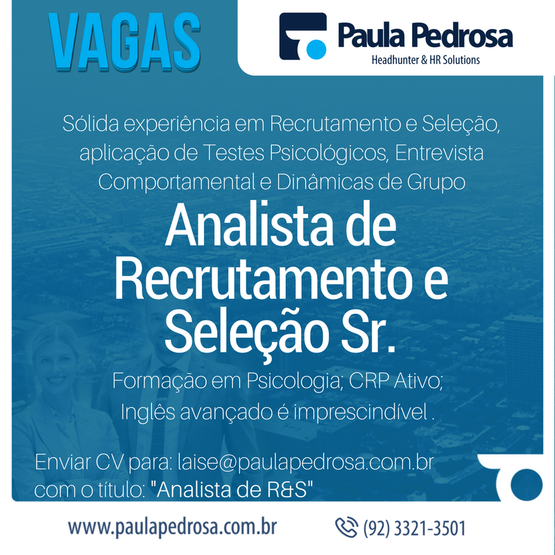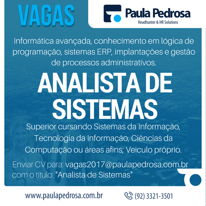 Os interessados encaminhem currículo detalhadoparavagas.manaus@manpower.com.br com o nome da vaga até 05/04.