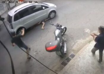 MINAS GERAIS | Uma câmera de segurança registrou no sábado (28) o momento em que um ciclista, de 14 anos, ...