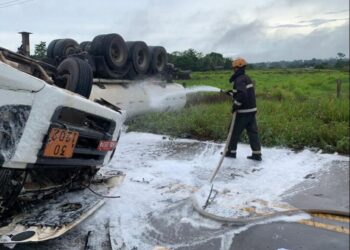 MANAUS - AM | Um caminhão carreta carregado de combustível tombou na rodovia AM-010 (Deputado Vital de Mendonça), nesta quinta-feira ...