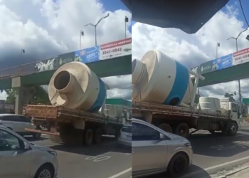 MANAUS - AM | Uma carreta tombou por volta de 5h da manhã desta quarta-feira (06), em uma Rotatória, também ...