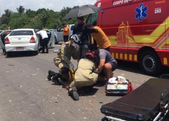 MANAUS - AM | Duas pessoas ficaram gravemente feridas em um acidente envolvendo a motocicleta e um carro na Ponte ...