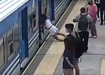Mulher desmaia e cai no vão de plataforma de trem em movimento; imagens fortes