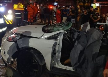Vídeo: homens m0rrem dentro do carro após veículo capotar em Manaus