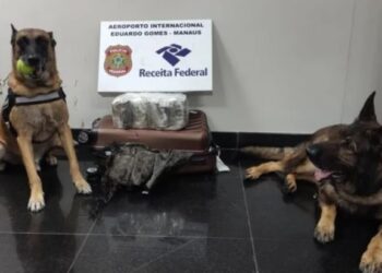 MANAUS, (AM) - A Receita Federal apreendeu 14,7 kg de drogas, maconha do tipo skunk, escondidas em malas no Aeroporto Internacional ...