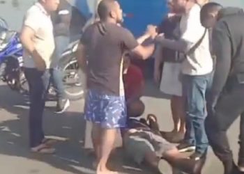 Acidente de moto deixa homem ag0nizando no chão e motorista brigando na rua em Manaus