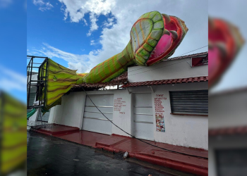 PARINTINS (AM) – Durante a chuva desta segunda-feira (10), parte de uma alegoria do Boi Garantido caiu sobre uma casa ...