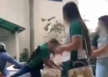 Em Manaus, alunas brigam na frente de escola por causa de um curumim e viram chacota; veja o vídeo