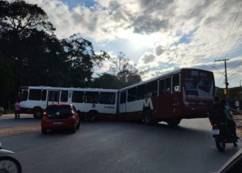 Ônibus tenta fazer retorno e quebra ao meio em Manaus