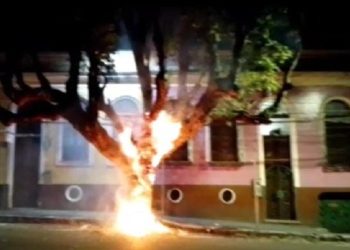 Árvore centenária no Centro de Manaus incendiou após mulher colocar objetos para queimar, diz polícia