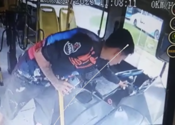 Vídeo: Assaltante entra em ônibus vazio e leva a chave do veículo