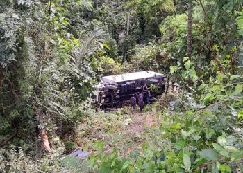 Sem freio de mão, caminhão se movimenta sozinho e despenca em mata na Autaz Mirim