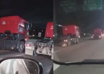 Vídeo: C0lisã0 entre moto e caminhão deixa d0is f3ridos e congestiona Avenida das Torres