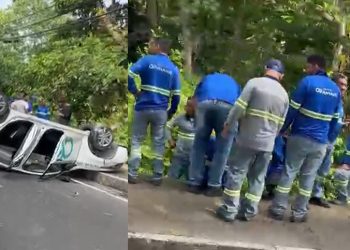 MANAUS - Um carro da Águas de Manaus capotou nesta quinta-feira (8), na avenida Doutor Theomário Pinto da Costa, no ...