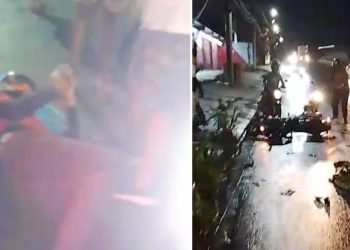 Vídeo: motoqueiros caem em seguida ao passar por rua coberta de óleo em Manaus