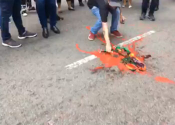 Provocação ou vandalismo? Bandeira do Flamengo é retirada à força de bar no Alvorada no dia de jogo