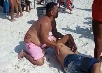 Banhista tem ombro perfurado por cabo de guarda-sol após ventania