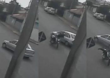 Vídeo forte mostra acidente de motoqueiro com carro e depois ele sem a perna no chão