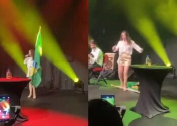 Cantora Bebel Gilberto, sobrinha de Chico Buarque, pisoteia bandeira do Brasil durante show nos EUA