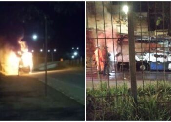 Ônibus é incendiado e criminosos deixam bilhete para polícia