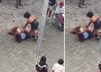 BRASIL - Duas blindadas brigaram no meio da rua na base do risca faca neste feriado na Praça Nilo Peçanha, ...