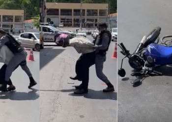 Vídeo: entregador luta com PM para não ter veículo levado na Getúlio Vargas: ‘eu tô indo trabalhar’