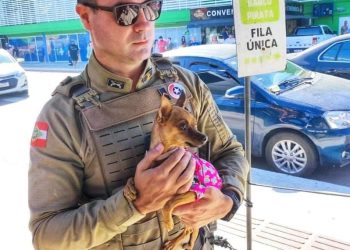 Na tarde da última sexta-feira (27), policiais resgataram um cachorro que estava preso no interior de um veículo, tentando se ...