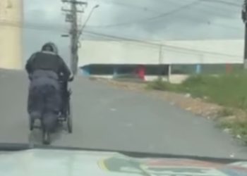Vídeo: Sargento da PM ajuda cadeirante a subir ladeira em Manaus e atitude repercute nas redes