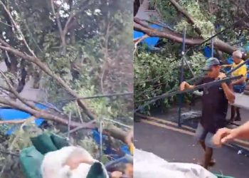Árvore centenária no bairro Aparecida cai em cima de feira. Veja!