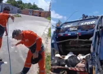 Vídeo: Sob sol forte, gari passa mal durante coleta de lixo em Manaus: ‘tá pegando aqui’