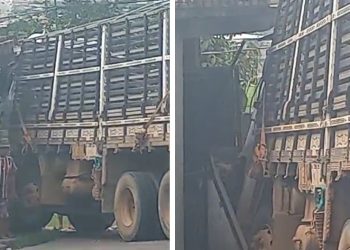 Caminhão atinge limitador de altura e trava avenida em Manaus