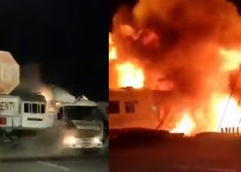 Vídeo: caminhão “prega” sobre trilhos, é atingido por trem de passageiros e explode