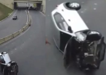 Carro capota debaixo do viaduto que vai para o aeroporto de Manaus