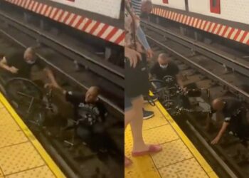 EUA | Um vídeo que viralizou nas redes sociais mostra um homem pulando nos trilhos de um metrô em Nova York, ...