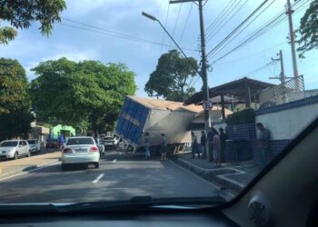 MANAUS - AM | Uma carreta tombou na manhã desta quarta-feira (24), na Avenida Ephigênio Salles, zona Centro-Sul de Manaus ...