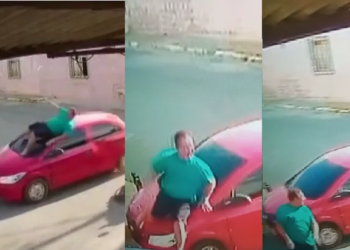 Motociclista bate em carro, faz ‘coreografia’ em cima e sai andando normalmente; vídeo