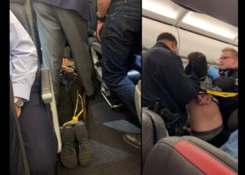 EUA - Um homem precisou ser contido por policiais após tentar abrir a porta de um avião em pleno voo ...