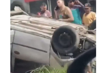 MANAUS (AM) - Um veículo de distribuição capotou na noite desta segunda-feira (13) na Avenida Cosme Ferreira, em frente à ...
