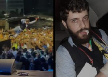 Humorista Diogo Defante quebra dente e braço após se jogar em público de show; confira