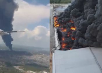 Incêndio no Distrito Industrial já dura mais de 20 horas: ‘muita resina, cola e tinta’
