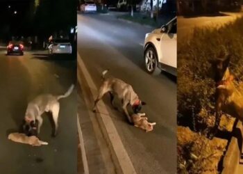 Vídeo: Cachorro emociona ao tentar reanimar amigo gato morto em atropelamento; confira