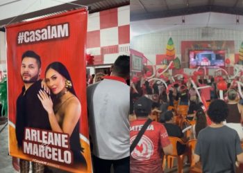 Vídeo: Amigos e fãs lotam a Escola de Samba A Grande Família para prestigiar casal amazonense no BBB