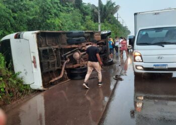 IRANDUBA - AM | Um ônibus escolar que transportava 13 estudantes, tombou na estrada AM-070 durante a chuva, no inicio ...